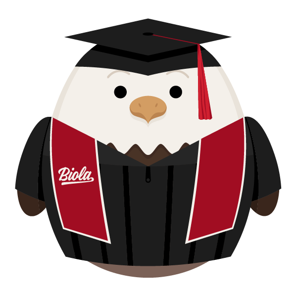 SquishEagles are Biola’s limited-edition line of Eddie the Eagle-themed plushies, designed to embody Biola’s brand and the student experience. Launched in November 2025, SquishEagles began as an idea to create moments of surprise and delight that break through students’ ordinary rhythms of campus life. While the first few editions are being exclusively released through student giveaways, we are excited to make Graduate Eddie the first of many SquishEagles available for our extended Biola community to purchase!